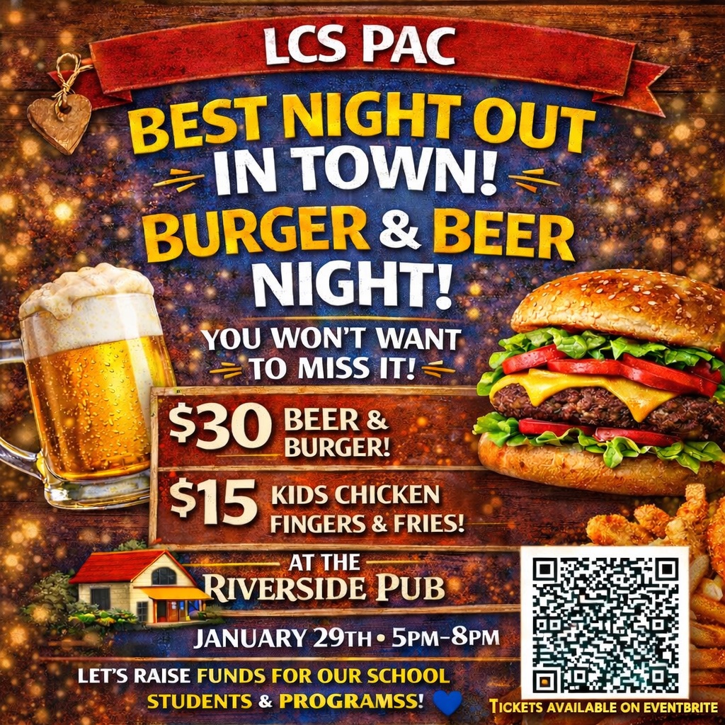 January 29th | Lake Cowichan School PAC Beer and Burger Come enjoy great food and support the LCS Pac! Tickets available at eventbrite.com Riverside Pub 56 North Shore Rd Lake Cowichan |