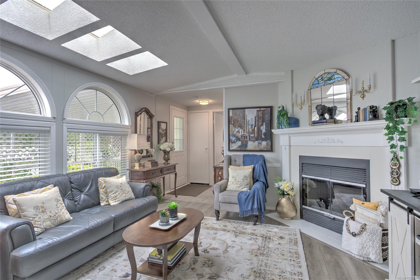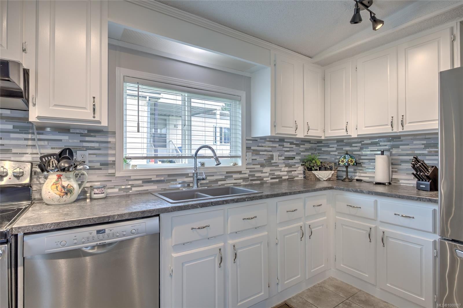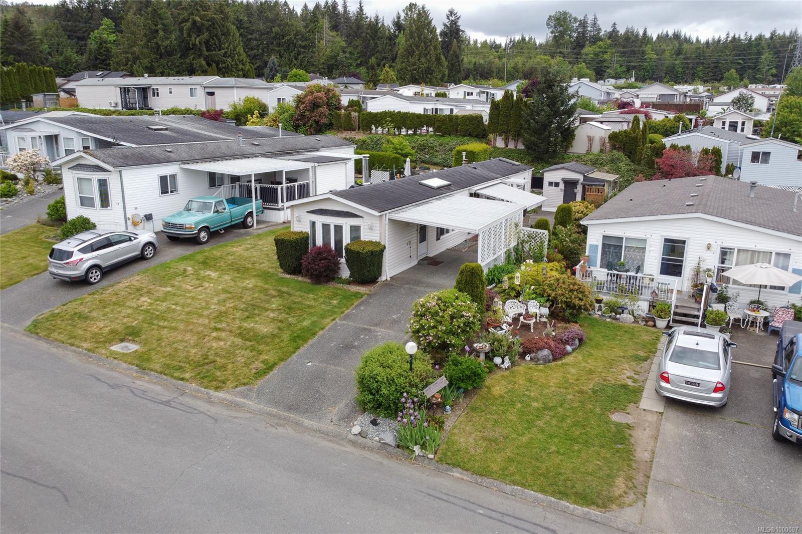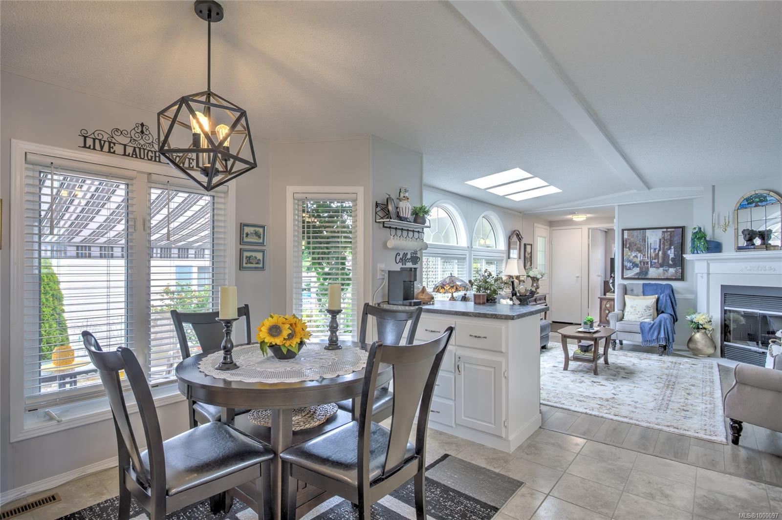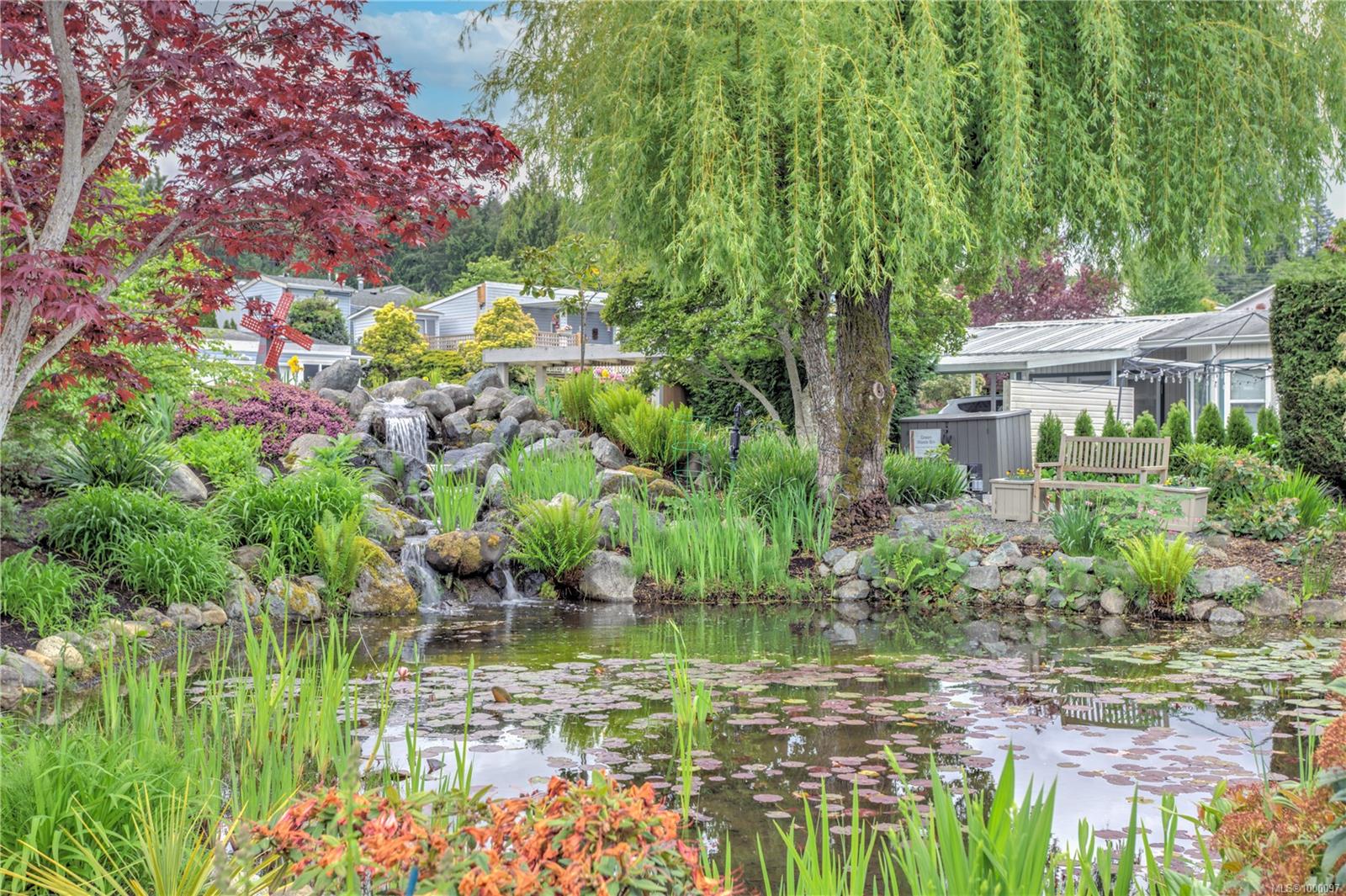 Welcome to Rocky Creek Village, arguably one of the nicest parks in the Cowichan Valley! And, as a former show suite, this 2 bedroom, 2 bathroom home is one of the nicest in the park! The bright, open concept main living area features generous windows and skylights throughout, a spacious kitchen with stainless steel appliances, lots of cupboard space and bay eating area, living room with cozy gas fireplace and easy access to the patio with retractable awning, perfect for BBQs and a shady retreat when needed. The well laid out plan situates bedrooms at either end of the unit, creating ample privacy for owners and guests. The primary bedroom includes a generous ensuite complete with separate shower and soaker tub. Covered parking in the attached carport, detached storage shed for your tools and hobbies, low maintenance landscaping, upgraded pex plumbing throughout and a new gas hot water tank installed in 2025 too! Come explore easy retirement living in this desirable 55+ community!