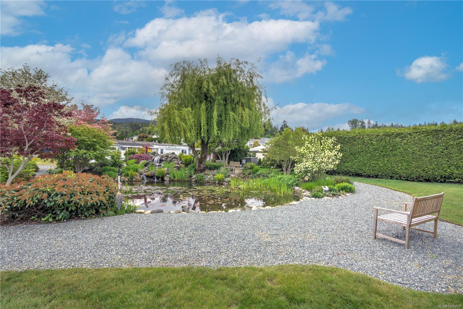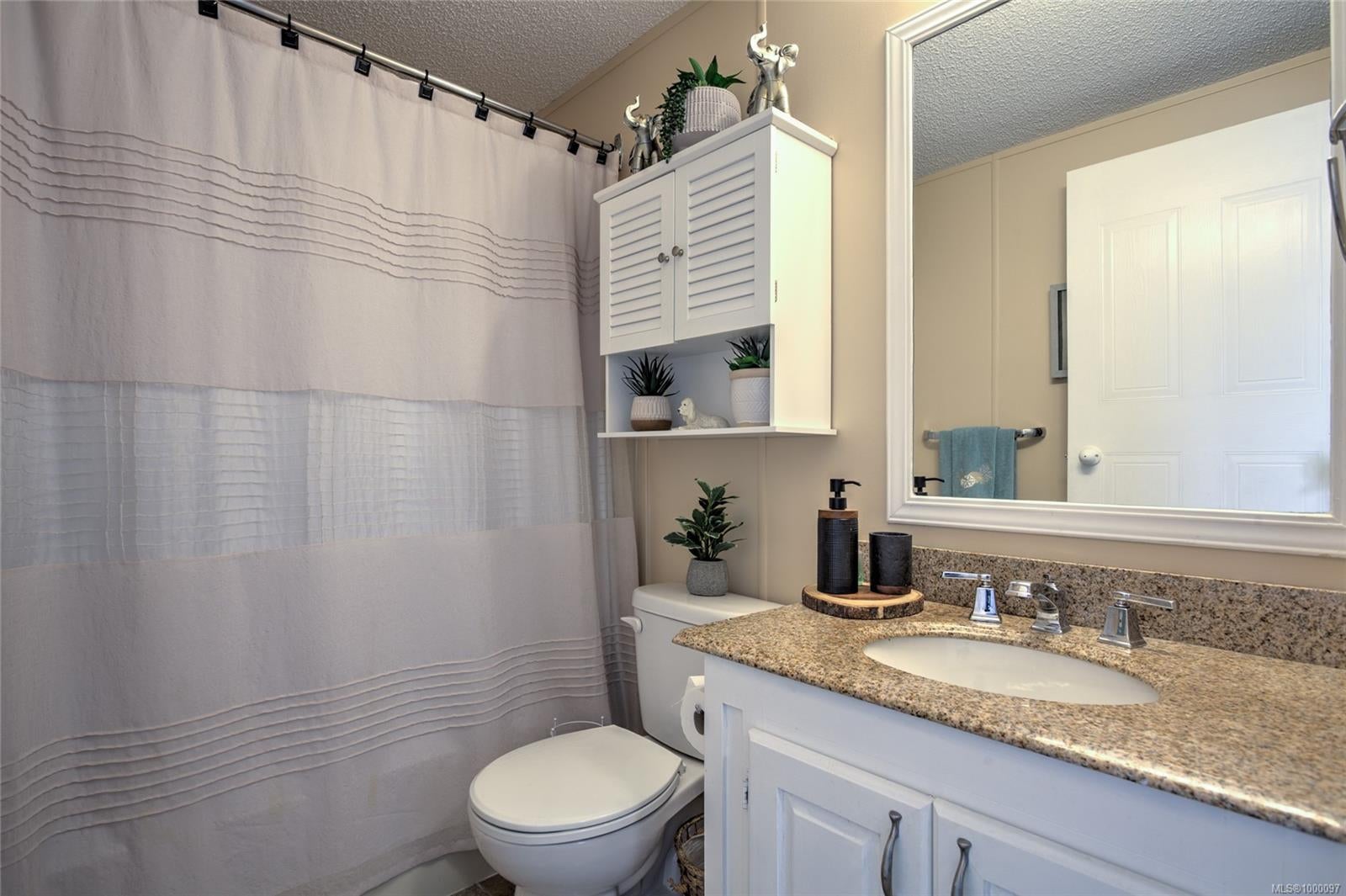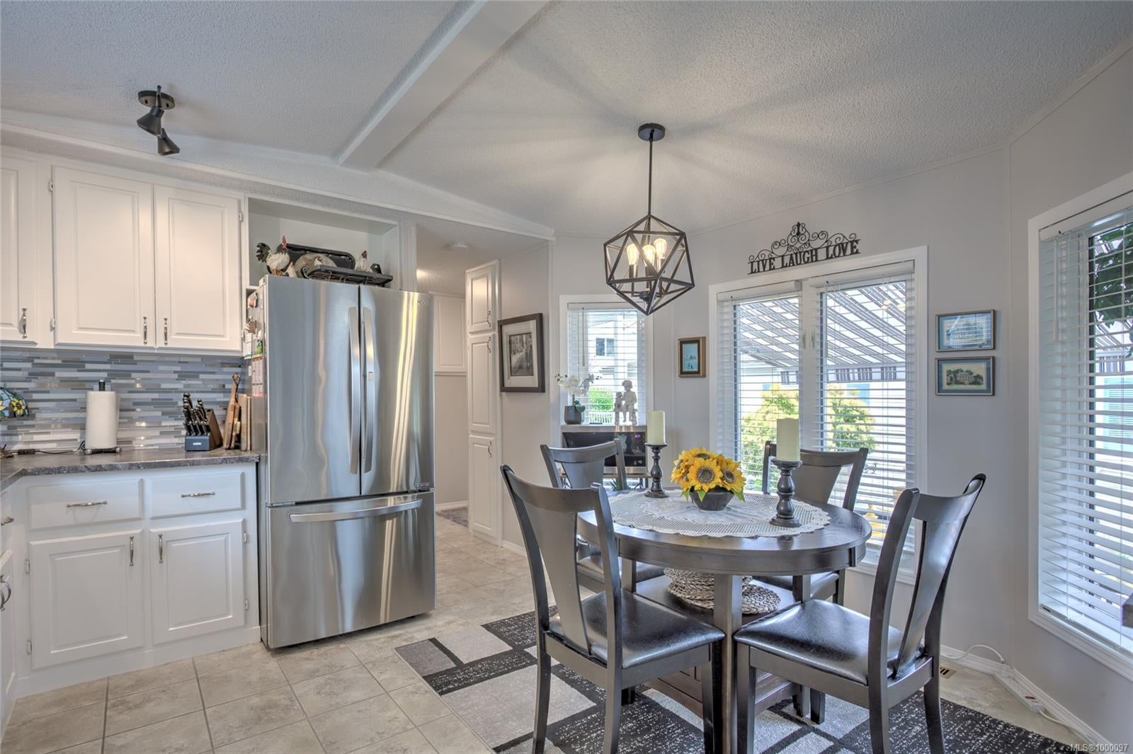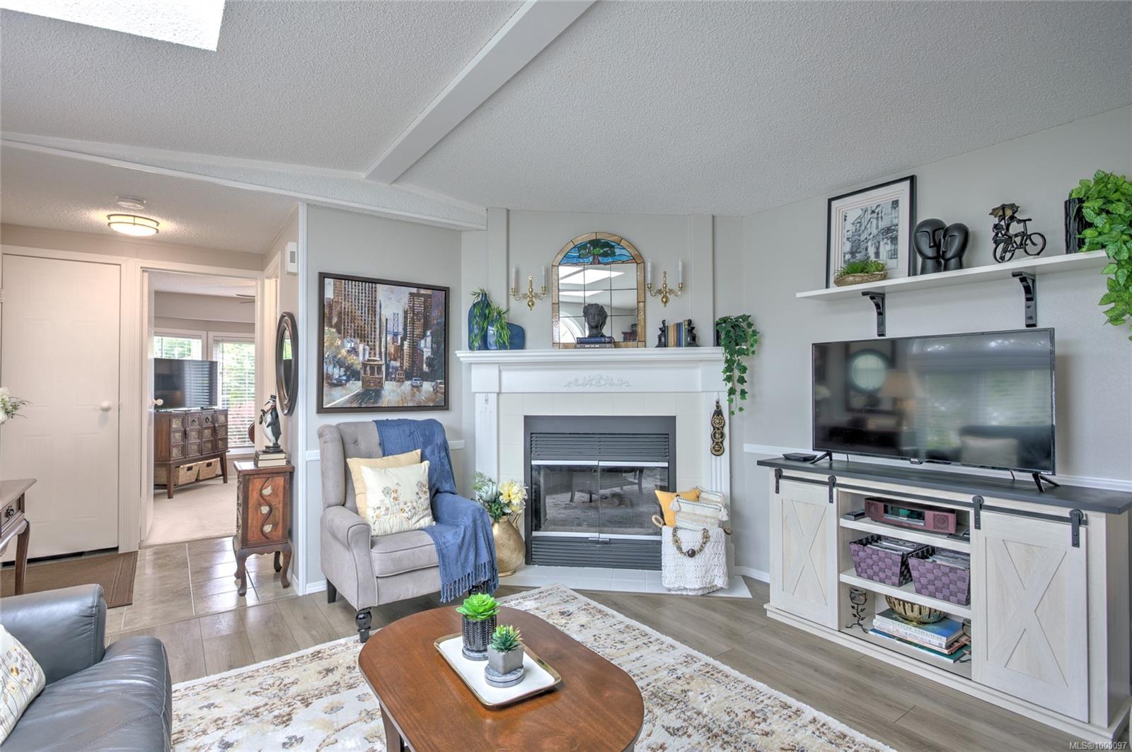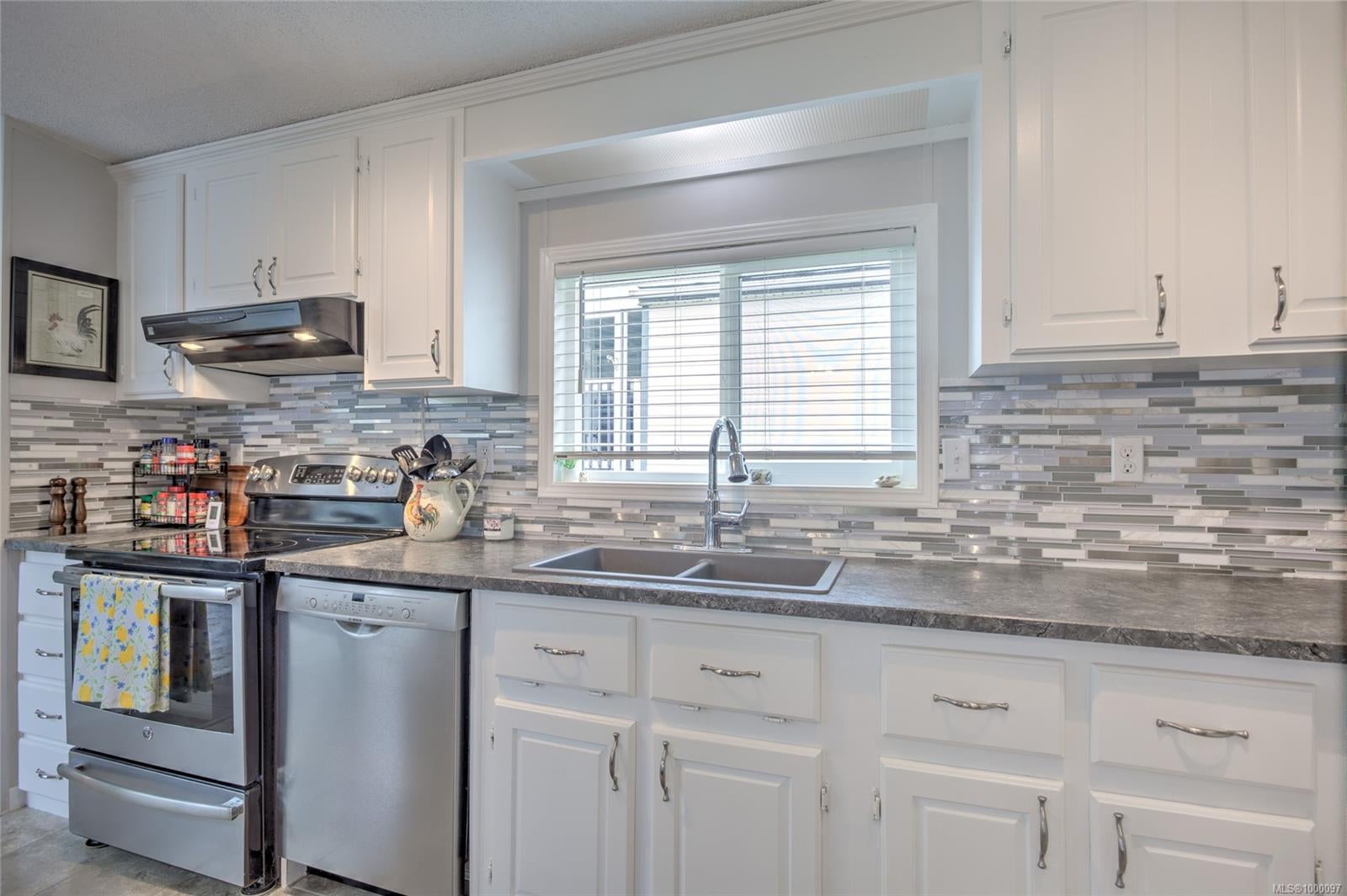 Welcome to Rocky Creek Village, arguably one of the nicest parks in the Cowichan Valley! And, as a former show suite, this 2 bedroom, 2 bathroom home is one of the nicest in the park! The bright, open concept main living area features generous windows and skylights throughout, a spacious kitchen with stainless steel appliances, lots of cupboard space and bay eating area, living room with cozy gas fireplace and easy access to the patio with retractable awning, perfect for BBQs and a shady retreat when needed. The well laid out plan situates bedrooms at either end of the unit, creating ample privacy for owners and guests. The primary bedroom includes a generous ensuite complete with separate shower and soaker tub. Covered parking in the attached carport, detached storage shed for your tools and hobbies, low maintenance landscaping, upgraded pex plumbing throughout and a new gas hot water tank installed in 2025 too! Come explore easy retirement living in this desirable 55+ community!