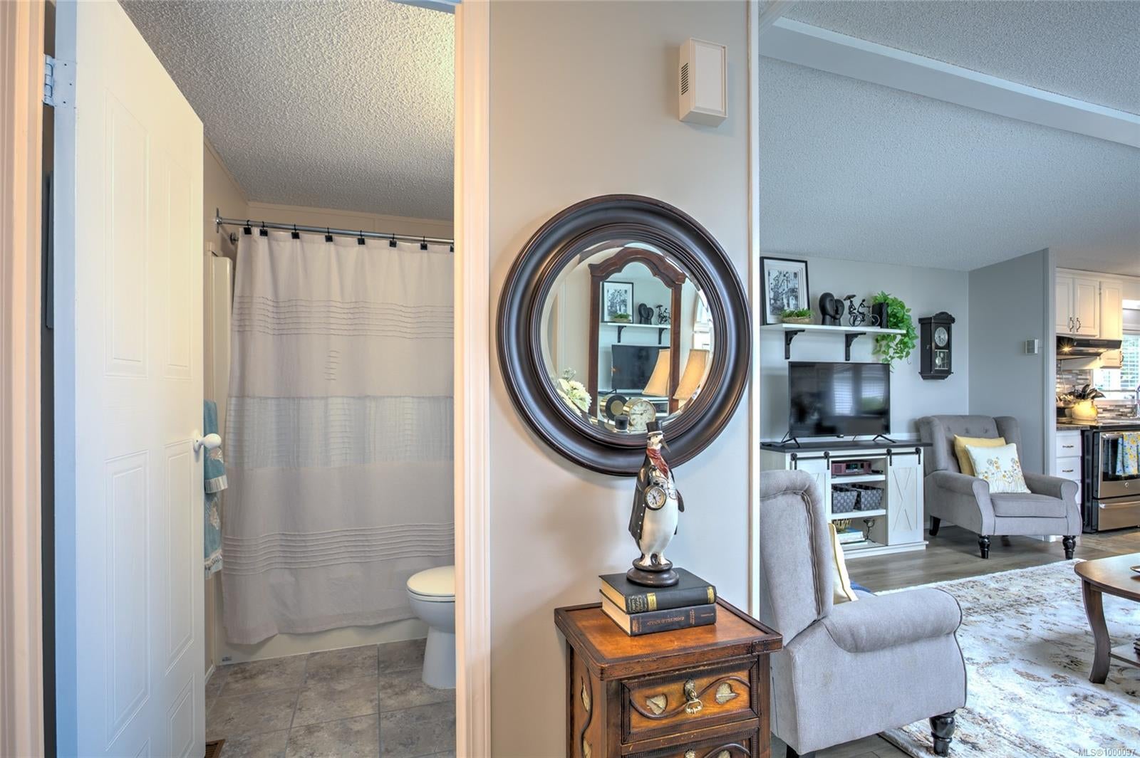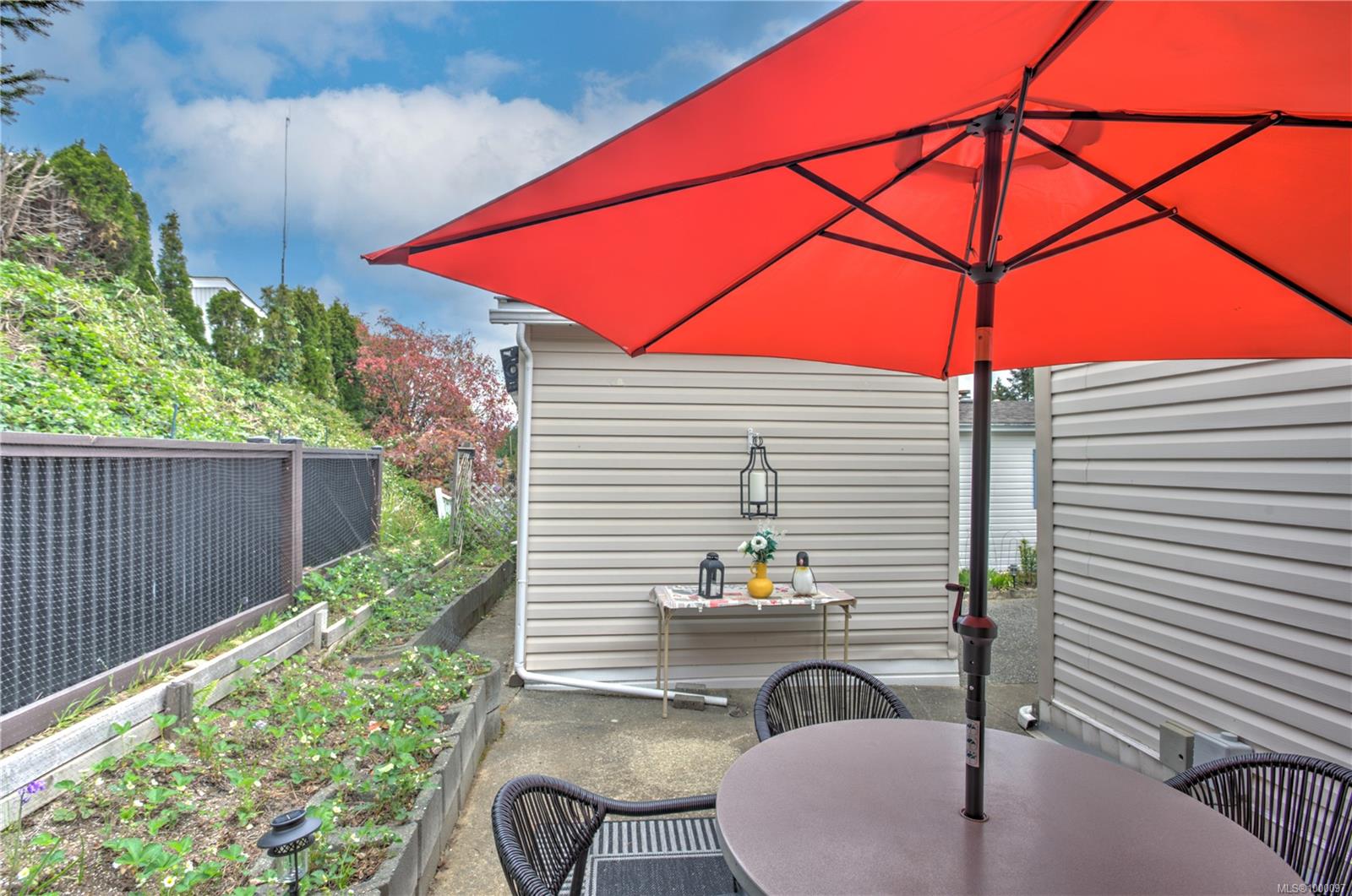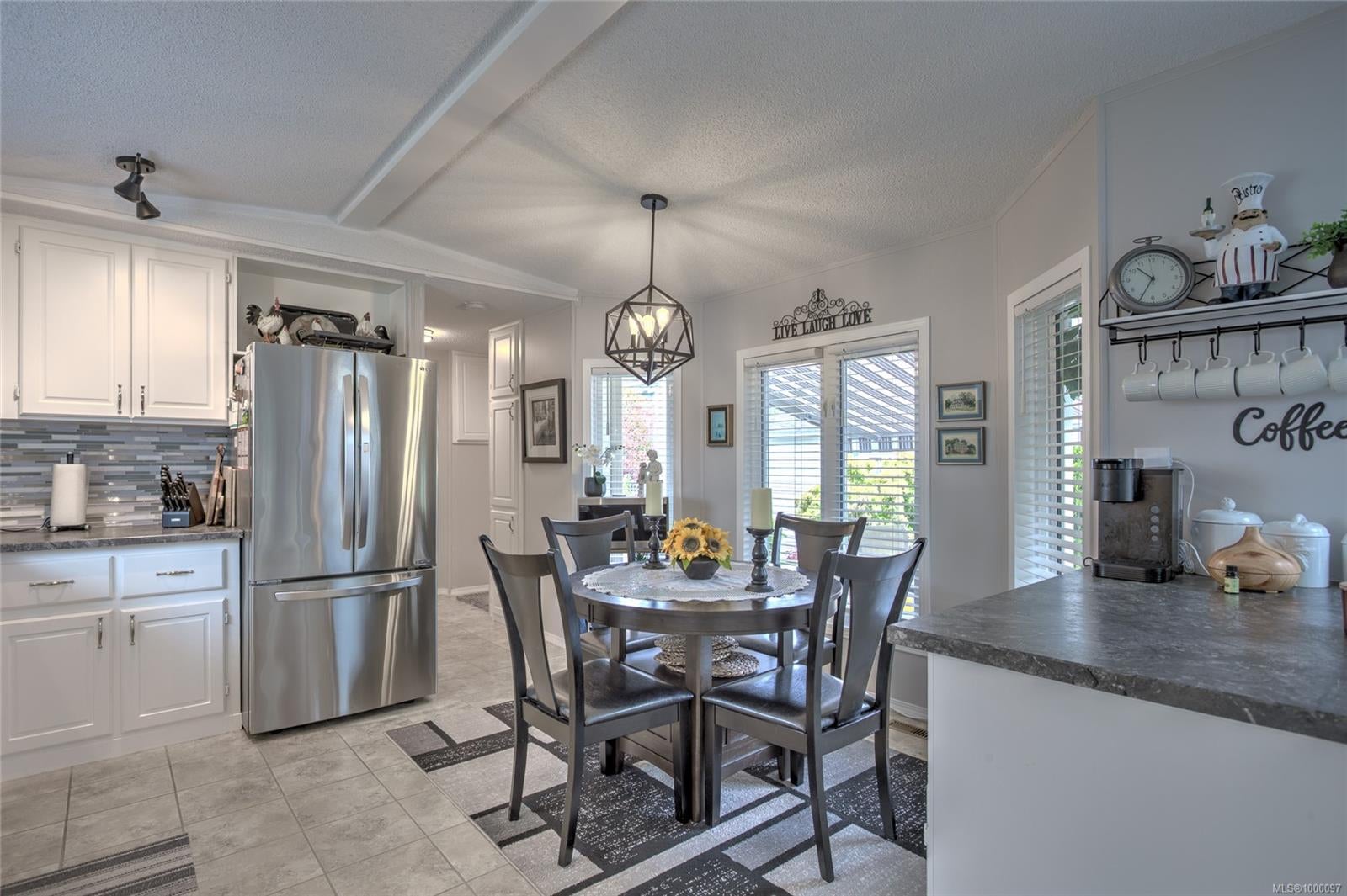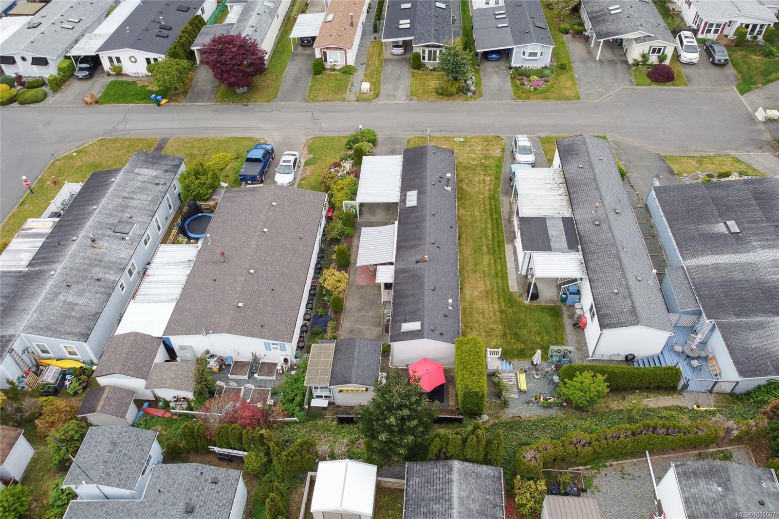 Welcome to Rocky Creek Village, arguably one of the nicest parks in the Cowichan Valley! And, as a former show suite, this 2 bedroom, 2 bathroom home is one of the nicest in the park! The bright, open concept main living area features generous windows and skylights throughout, a spacious kitchen with stainless steel appliances, lots of cupboard space and bay eating area, living room with cozy gas fireplace and easy access to the patio with retractable awning, perfect for BBQs and a shady retreat when needed. The well laid out plan situates bedrooms at either end of the unit, creating ample privacy for owners and guests. The primary bedroom includes a generous ensuite complete with separate shower and soaker tub. Covered parking in the attached carport, detached storage shed for your tools and hobbies, low maintenance landscaping, upgraded pex plumbing throughout and a new gas hot water tank installed in 2025 too! Come explore easy retirement living in this desirable 55+ community!