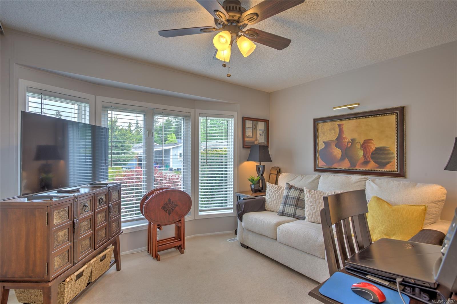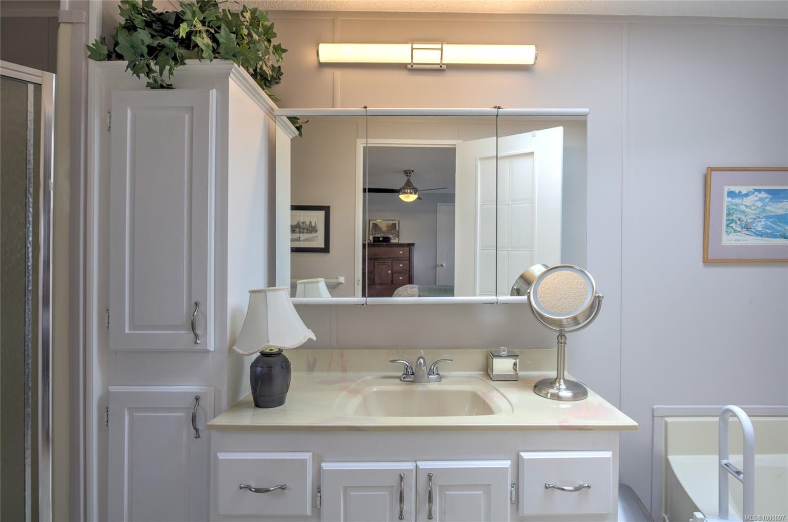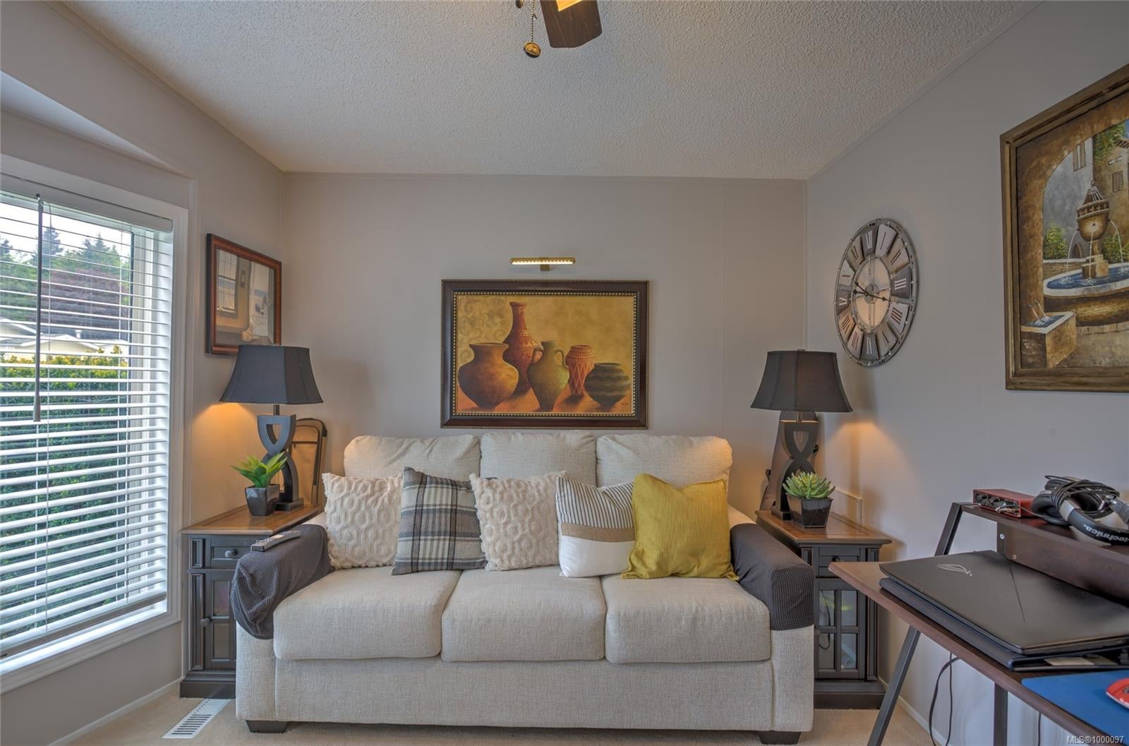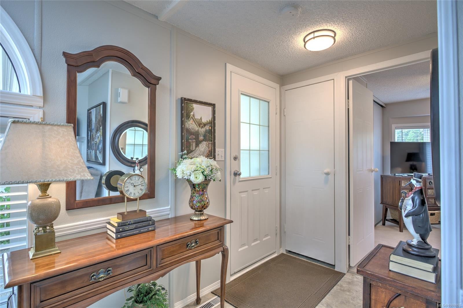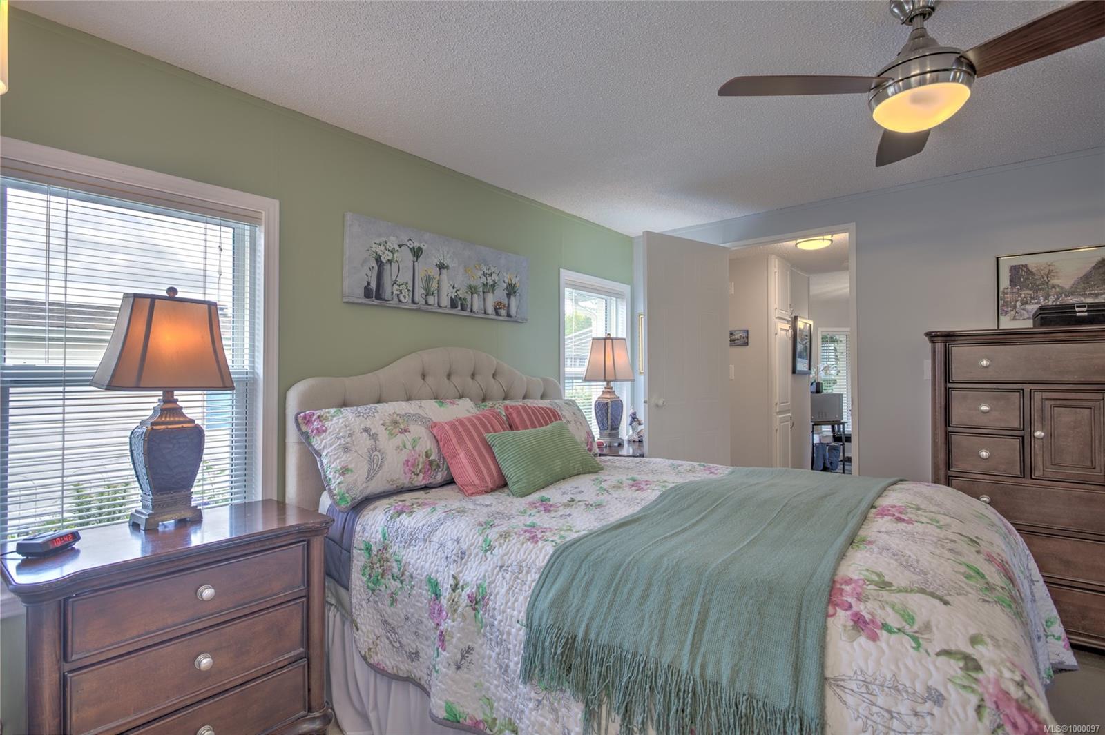Welcome to Rocky Creek Village, arguably one of the nicest parks in the Cowichan Valley! And, as a former show suite, this 2 bedroom, 2 bathroom home is one of the nicest in the park! The bright, open concept main living area features generous windows and skylights throughout, a spacious kitchen with stainless steel appliances, lots of cupboard space and bay eating area, living room with cozy gas fireplace and easy access to the patio with retractable awning, perfect for BBQs and a shady retreat when needed. The well laid out plan situates bedrooms at either end of the unit, creating ample privacy for owners and guests. The primary bedroom includes a generous ensuite complete with separate shower and soaker tub. Covered parking in the attached carport, detached storage shed for your tools and hobbies, low maintenance landscaping, upgraded pex plumbing throughout and a new gas hot water tank installed in 2025 too! Come explore easy retirement living in this desirable 55+ community!
