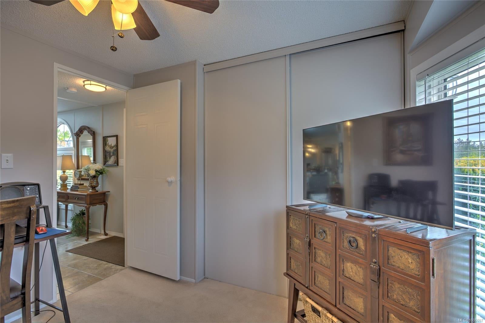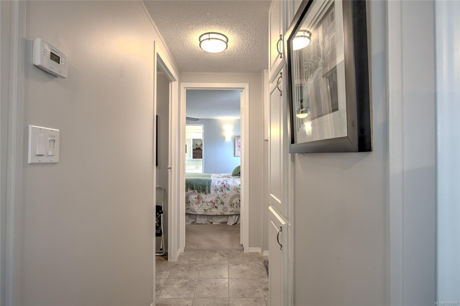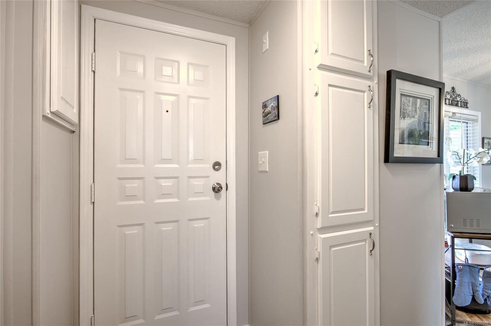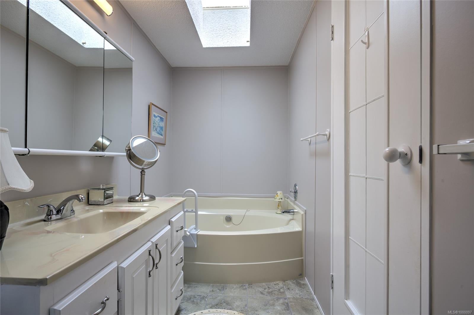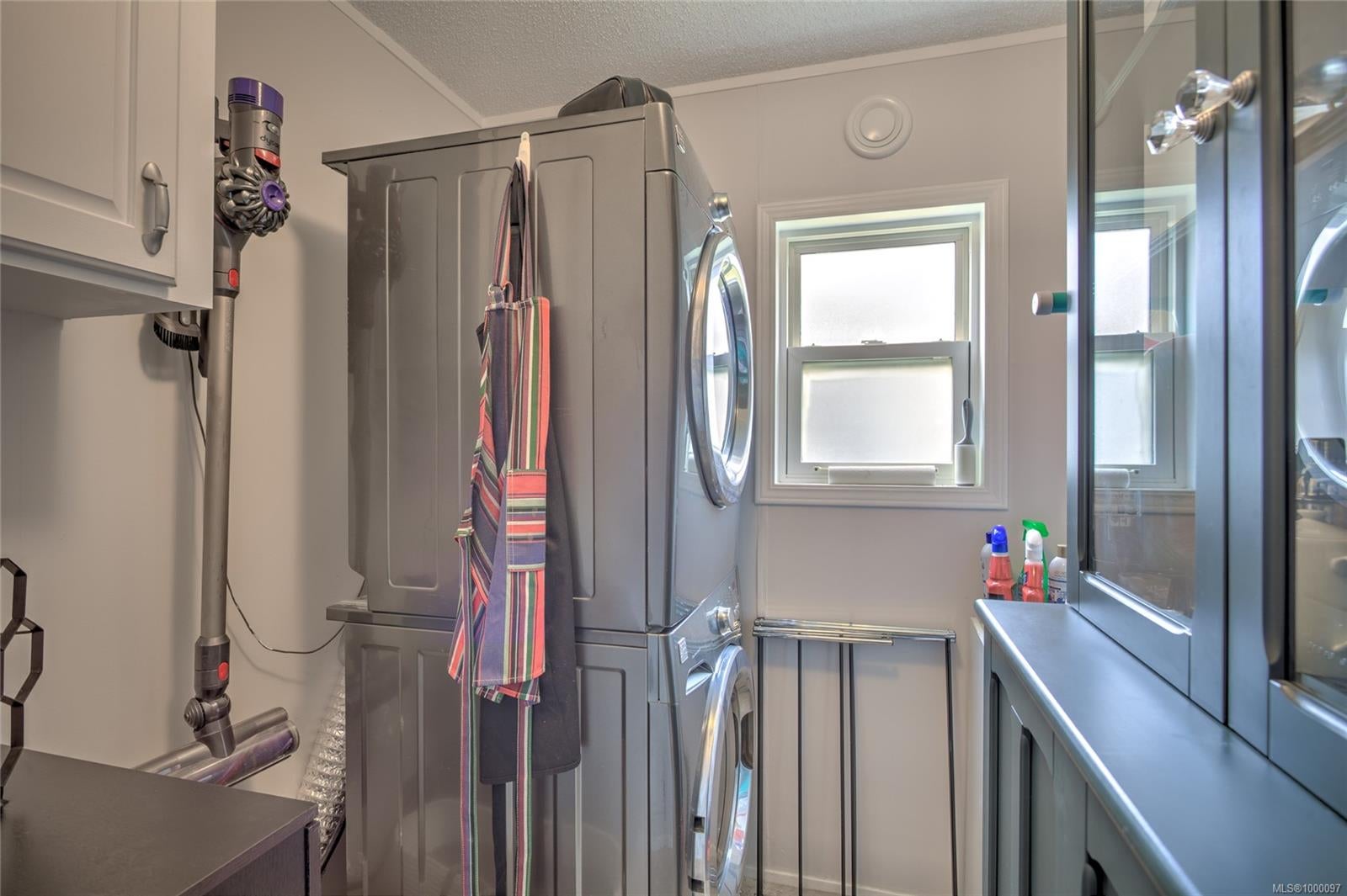 Welcome to Rocky Creek Village, arguably one of the nicest parks in the Cowichan Valley! And, as a former show suite, this 2 bedroom, 2 bathroom home is one of the nicest in the park! The bright, open concept main living area features generous windows and skylights throughout, a spacious kitchen with stainless steel appliances, lots of cupboard space and bay eating area, living room with cozy gas fireplace and easy access to the patio with retractable awning, perfect for BBQs and a shady retreat when needed. The well laid out plan situates bedrooms at either end of the unit, creating ample privacy for owners and guests. The primary bedroom includes a generous ensuite complete with separate shower and soaker tub. Covered parking in the attached carport, detached storage shed for your tools and hobbies, low maintenance landscaping, upgraded pex plumbing throughout and a new gas hot water tank installed in 2025 too! Come explore easy retirement living in this desirable 55+ community!