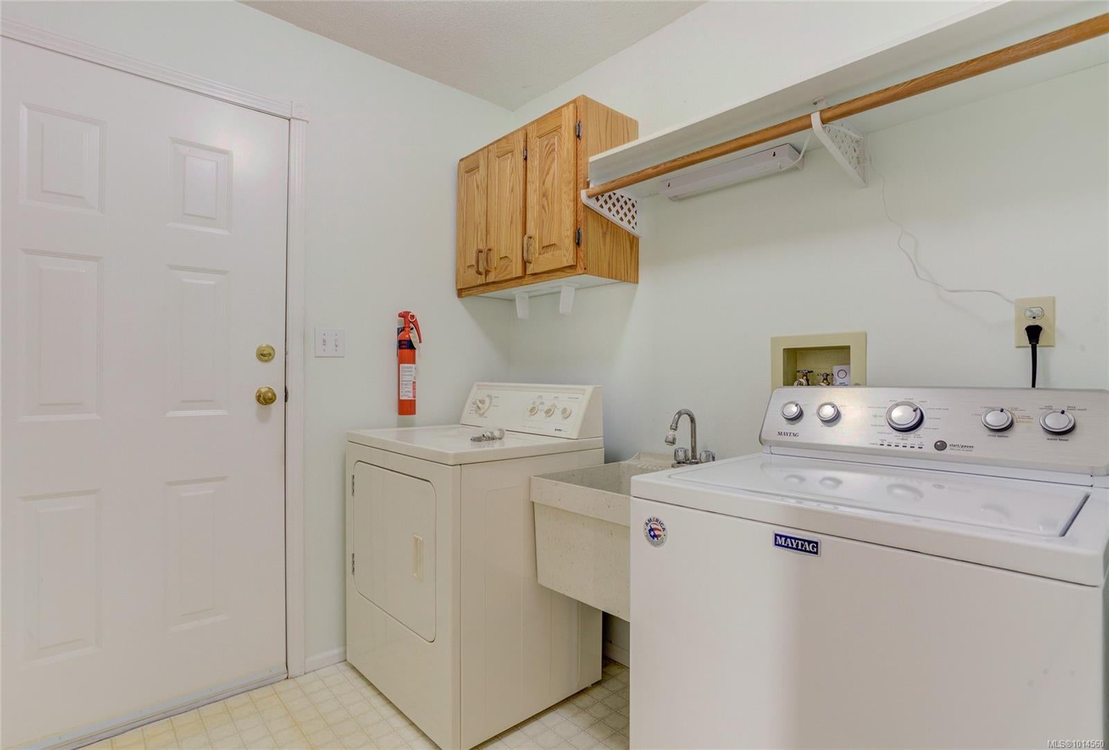 Welcome to this immaculate & well-maintained 2 bedroom, 2 bath rancher situated on a manicured & easy-care 0.42-acre lot. The open-concept main living area is filled with natural light & features a cozy natural gas fireplace. The spacious kitchen includes classic Oak cabinetry, charming wood accents, a convenient breakfast bar, and plenty of storage with dining room access to a large back deck —perfect for relaxing or entertaining. Both bedrooms boast walk-in closets with built-in organizers, and the primary bedroom includes a private 2-piece ensuite. Hobbyists will love the enormous 220-wired shop space located in the full-height basement—ideal for projects and storage. There's plenty of space for your toys with RV parking & a double garage and loads of privacy, backing onto greenspace. Don't miss the opportunity to own this beautifully cared-for home in a very desirable Duncan neighbourhood!