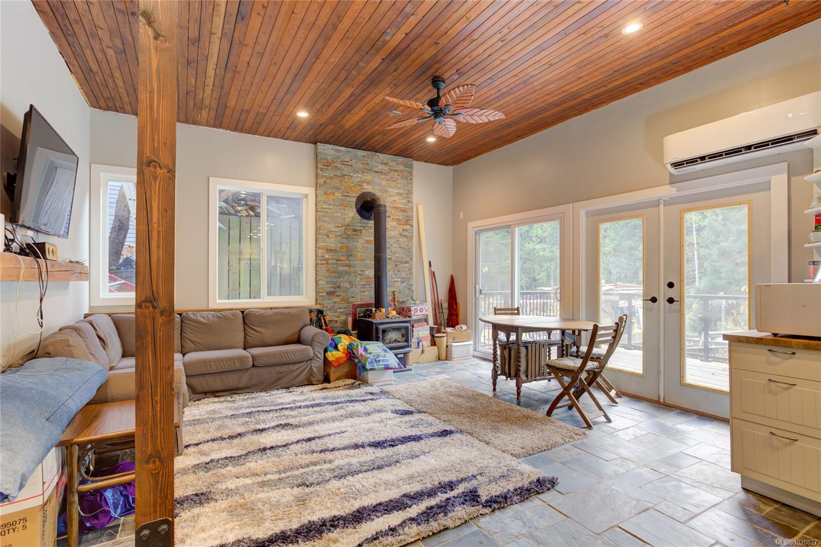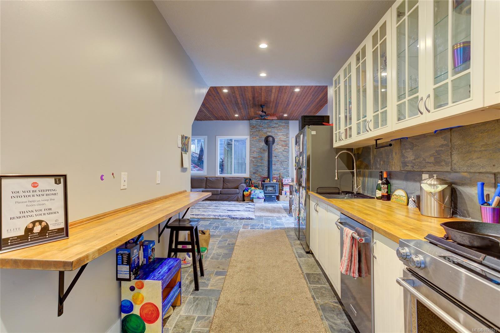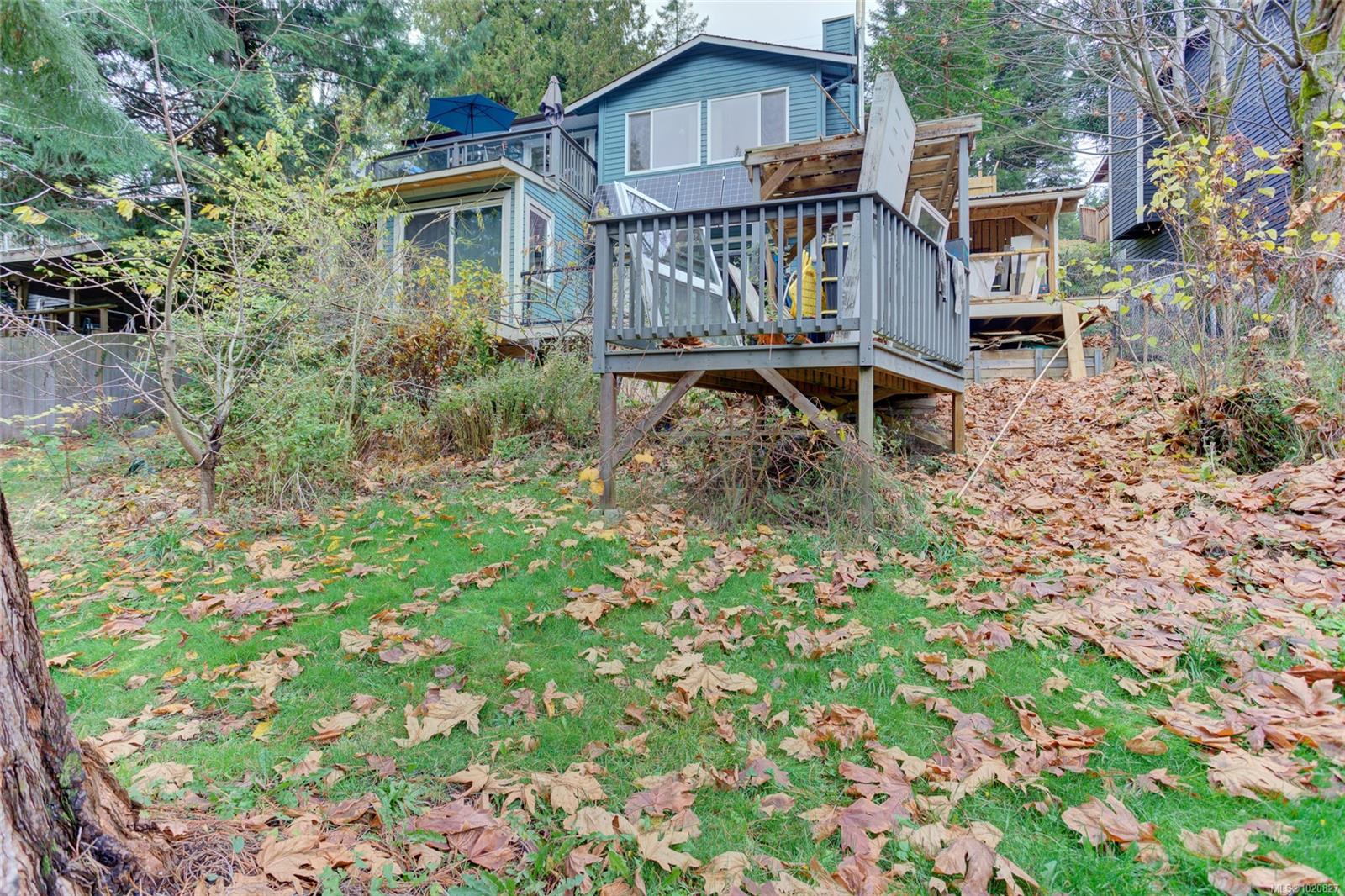 Investment or multi-generational living alert! Discover the natural beauty of your own private sanctuary in a prime Nanaimo location. Backing onto Trillium Park—and with Long Lake along with major city amenities just moments away—this versatile property offers two beautifully updated living spaces (up and down) plus a charming guest/studio micro-suite. Each suite has its own entrance and balcony with peaceful views of the pond and idyllic backyard. The upper level is bright and open, featuring 2 bedrooms and 1 bathroom. The lower level includes a galley style kitchen that opens to a spacious living area with high ceilings and abundant windows, along with 2 bedrooms and 2 bathrooms—including an ensuite with a relaxing soaker tub. With solar panels, a cozy woodstove, heat pump, thermal windows, and numerous updates throughout, this home is move-in ready and perfect for generating immediate rental income or accommodating extended family.