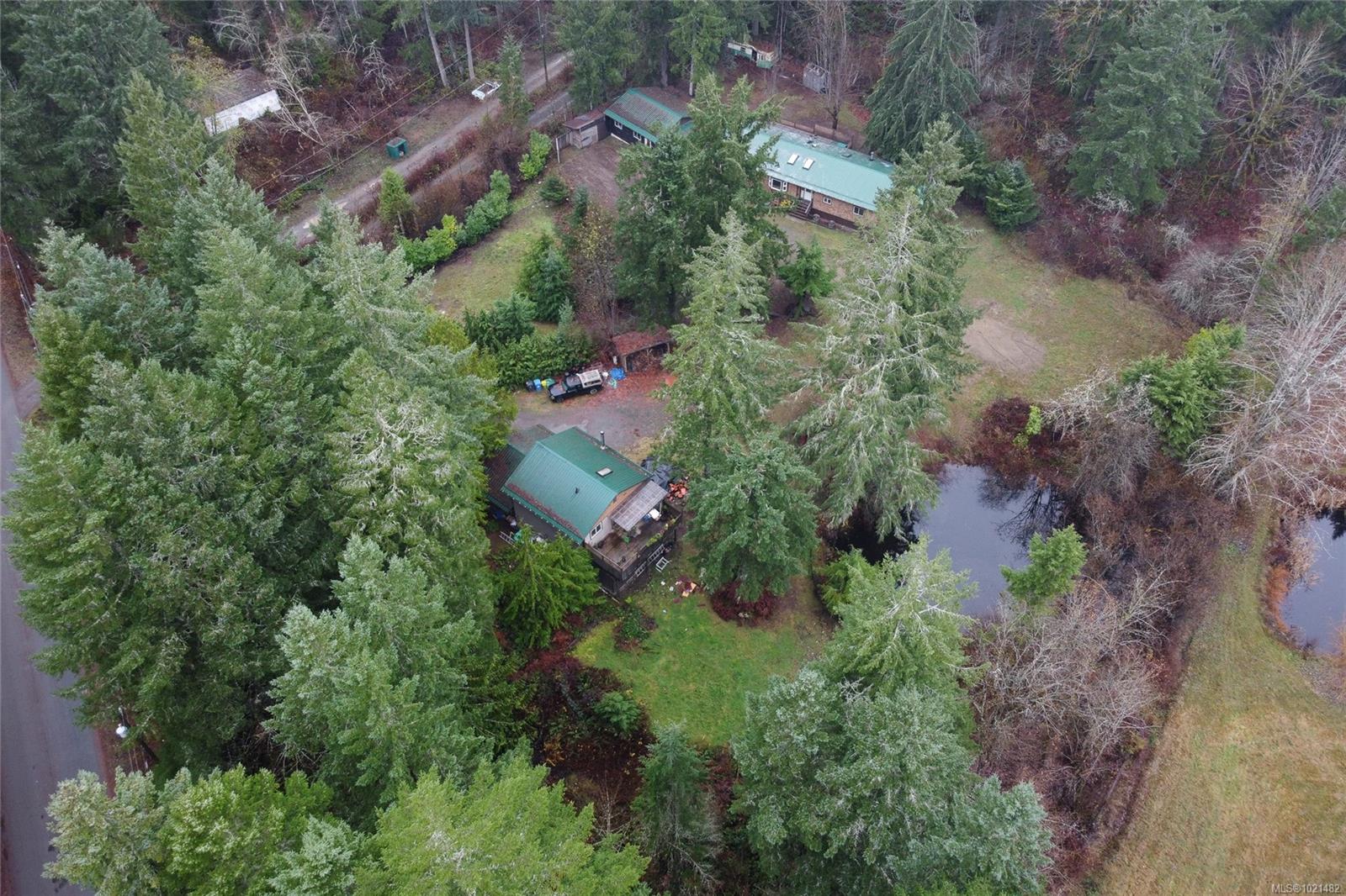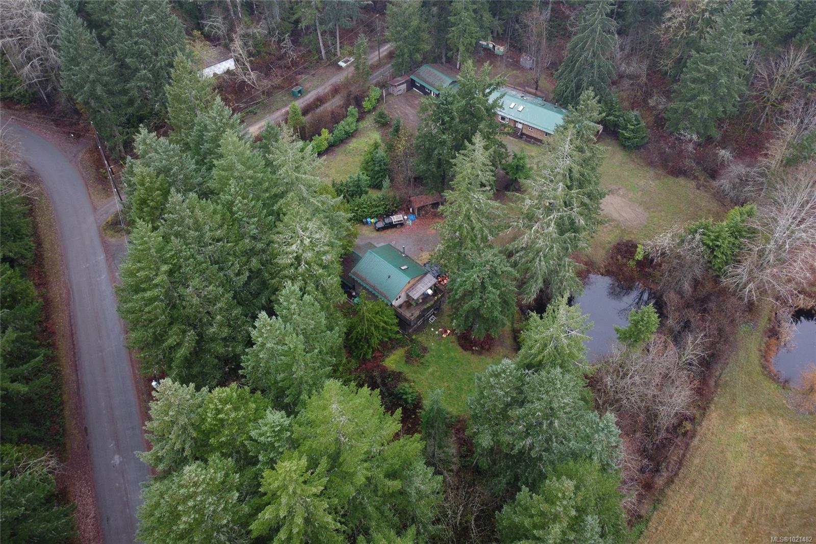 Discover exceptional value and versatility on this peaceful 2 acre property just minutes from Duncan. The main residence is a spacious 4-bedroom, 1-bath double-wide home featuring generous deck space—including partially covered areas—perfect for year-round outdoor living. Inside, cozy wood stoves warm the family room and kitchen, and a durable metal roof offers long-lasting peace of mind. A detached 2-car garage/workshop provides ample room for vehicles, hobbies, and storage. A second dwelling offers rental income or multigenerational living potential. This 1-bedroom, 1-bath unit includes a large deck, a wood stove, a bright studio space on the lower level, plus its own workshop and carport. The property itself is mostly treed, offering excellent privacy, separation between the two homes, and a serene rural atmosphere. Enjoy the firepit, gardens, and tranquil pond—an ideal setting for those seeking space, nature, and quiet living while staying close to town amenities.
