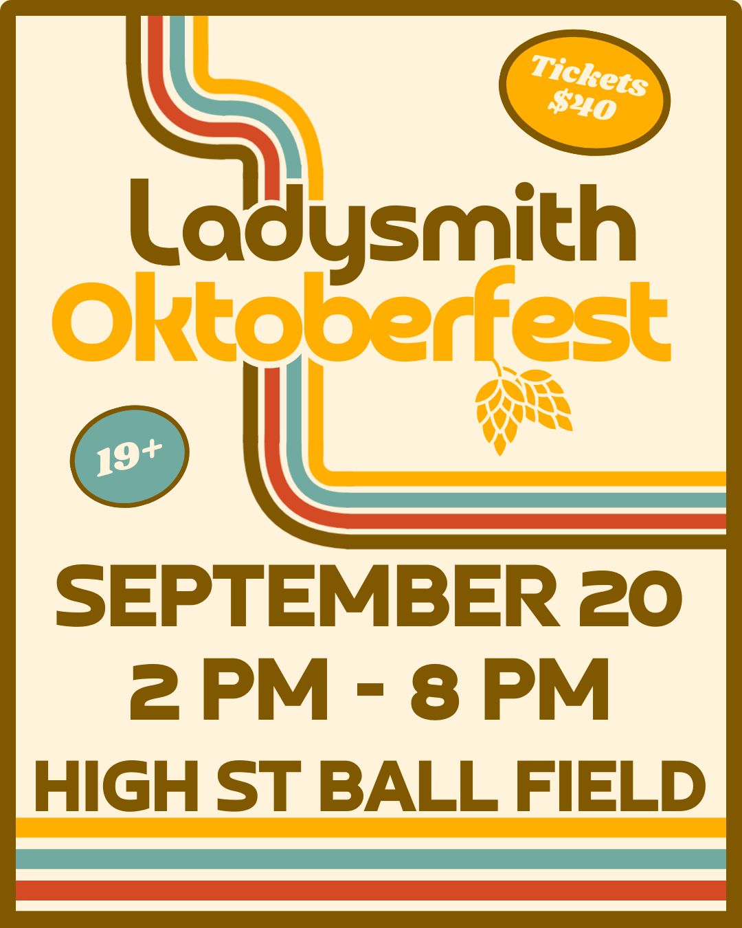 Sat, September 20th | Ladysmith Oktoberfest Come enjoy island beers, delicious food and great local music at the 3rd Annual Ladysmith Oktoberfest.